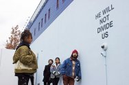 The project consisted of a camera planted on an outside wall of the museum, with the words “He will not divide us” written above it. Those in support of the words and of the art installation were given free reign and soon groups gathered chanting the words along with celebrities like Jaden Smith and Shia LaBeouf, who stayed on for a week. However with a free installation where people could each participate soon came those with views different then the groups gathered, and the trouble quickly began.