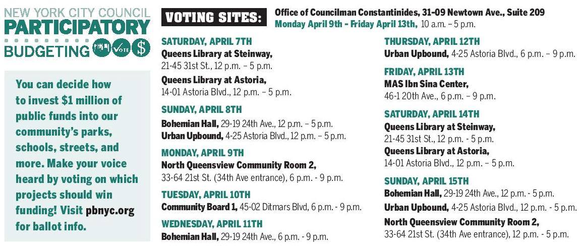 For the full ballot and additional information on how to vote and locations, you can visit council.nyc.gov/costa-constantinides/pb/7/
