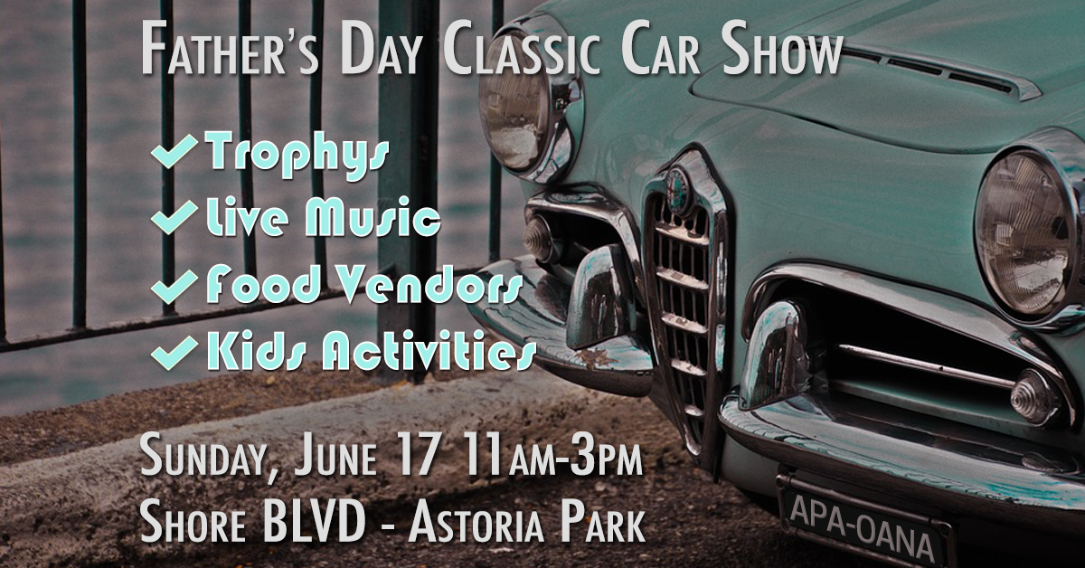 Participating classic cars will enter the site for registration prior to the event from the corner of Ditmars Boulevard and Shore Boulevard. While the event is free to the public there is a $15 entry fee for each vehicle. Car owners interested in entering their vehicles in the Father’s Day Classic Car Show are encouraged to contact Astoria Park Alliance by email at getinvolved