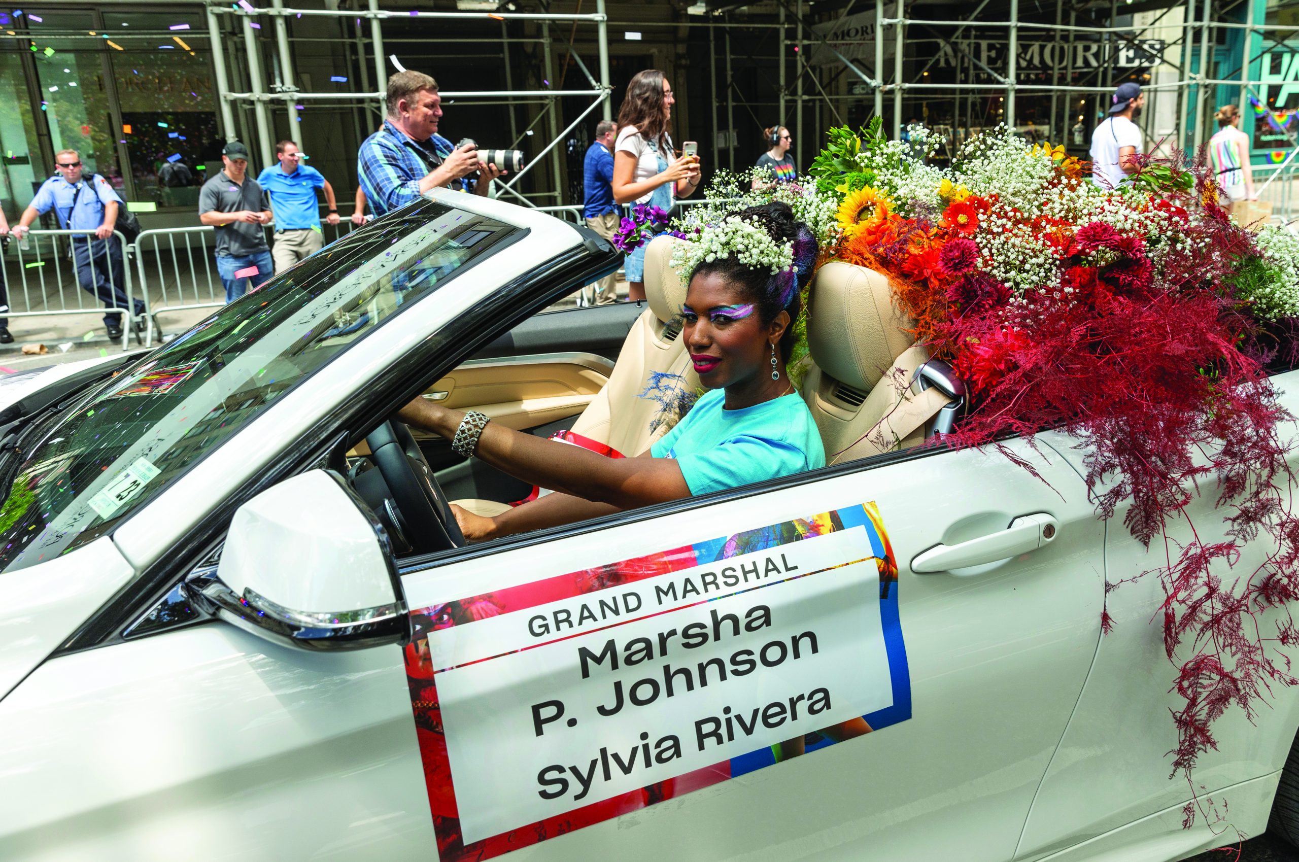 New York, NY – June 30, 2019: Grand Marshal Marsha P. Johnson attends New York 2019 Pride March on 5th Avenue in Manhattan