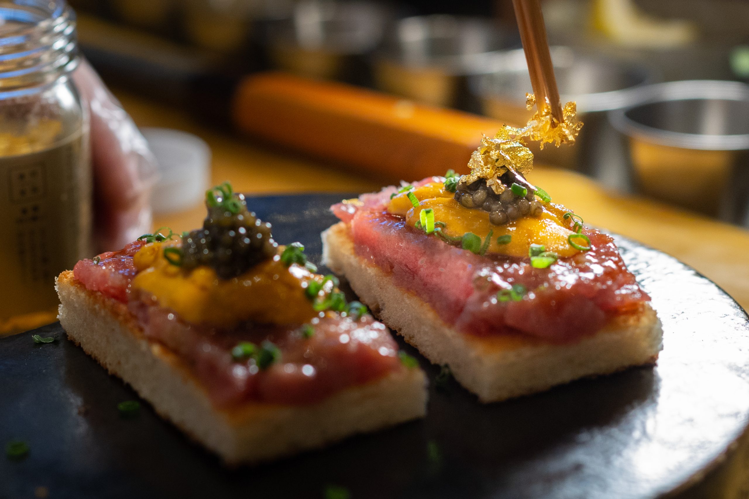 You can choose to add supplemental dishes such as: Uni Ikura Donburi, uni with ikura and oyster mushrooms; Uni Toro Toast, uni with taro and caviar served on milk bread; an Uni Tasting, or an Extended Nigiri course, which contains an extra five pieces of sushi.