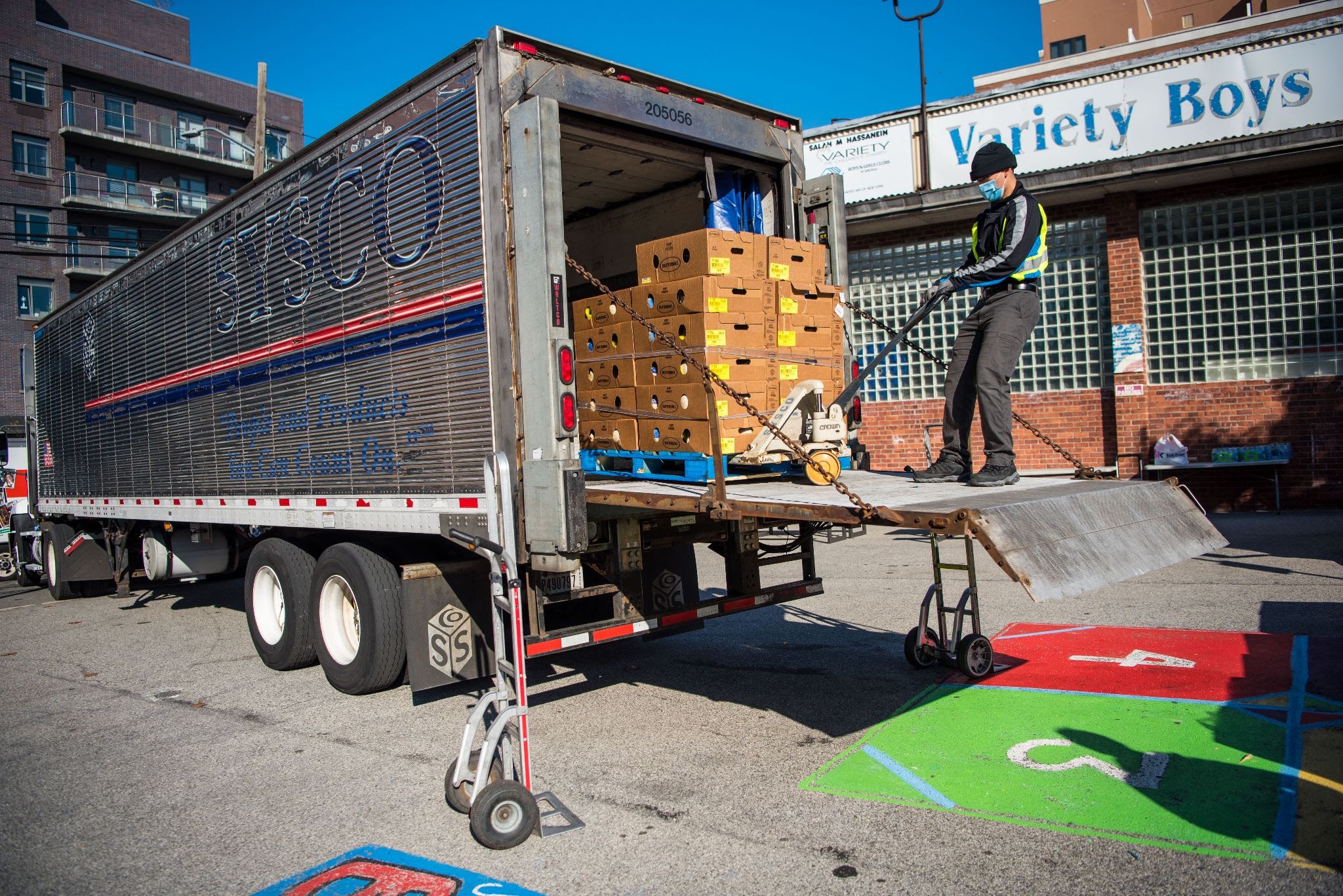 Astoria, New York. Thursday November 18, 2021. Queens Together and volunteers helped community groups distribute turkeys to families across the borough.