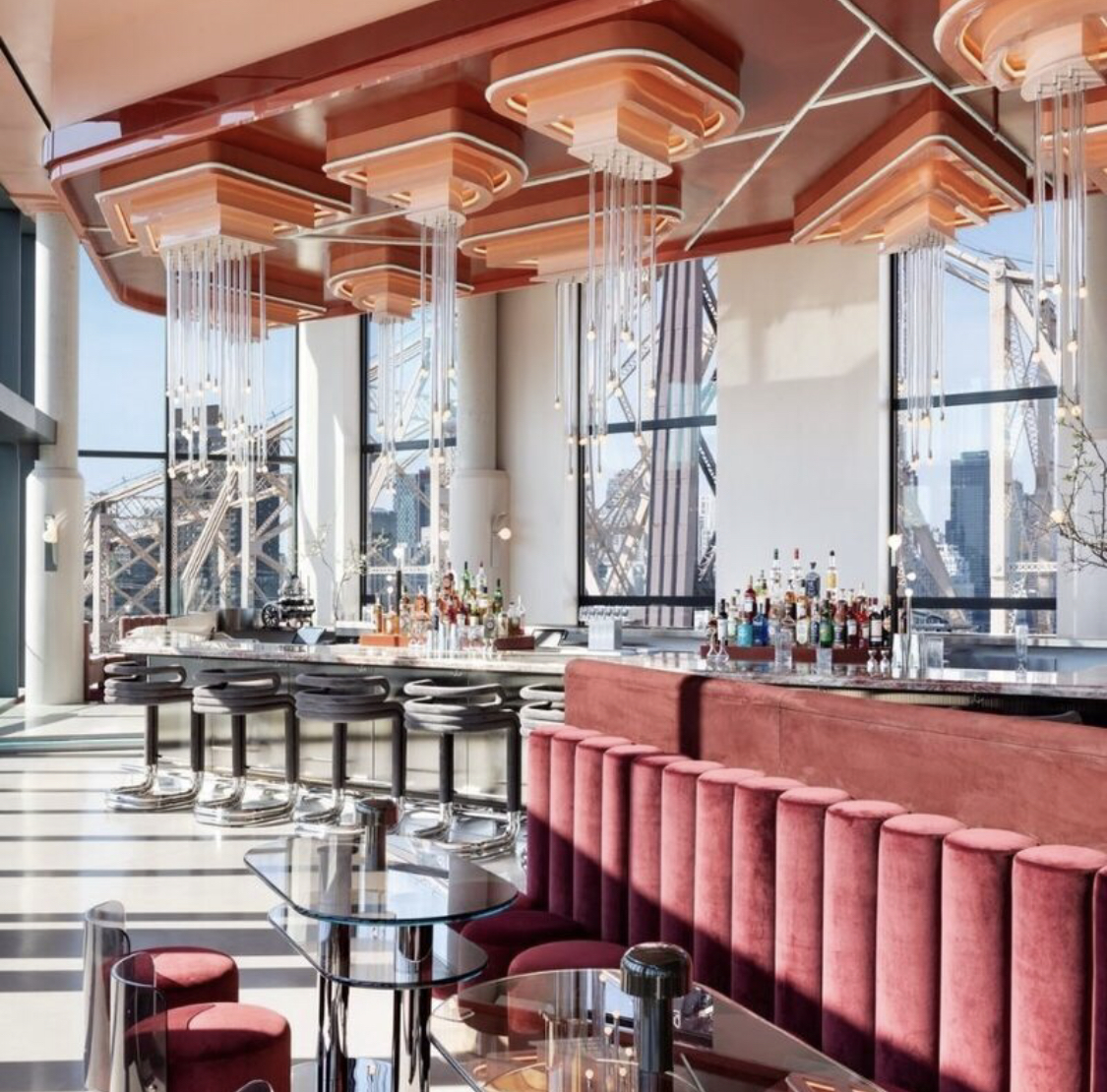 Situated in the middle of the East River lies Roosevelt Island. An island that was once the home to penitentiaries, insane asylums, and a small-pox hospital. These days, the ever-growing residential island is filled with green parks, shops, and restaurants. Upon the recent opening of the Graduate Hotel came a brand-new swanky rooftop aptly named the Panorama Room.