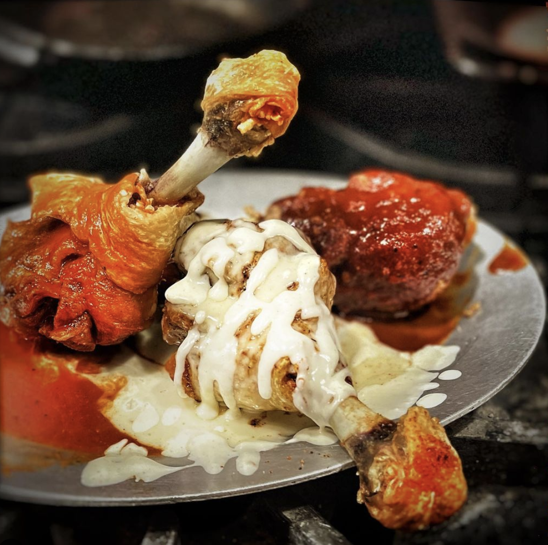 This moody LIC haunt has some of the best wings around. Satisfy your craving with over-sized, slow-cooked bone-in drums, available in the following flavors: Savage (specialty Buffalo sauce that will make your eyes water), Snow (white BBQ sauce), Smokey (sweet and spicy BBQ sauce), Sticky (Japanese hoisin sauce with crumbled feta) and Spicy (breaded and fried Nashville hot chicken with a Nola style sauce). The Huntress also offers boneless tenders in a variety of flavors.