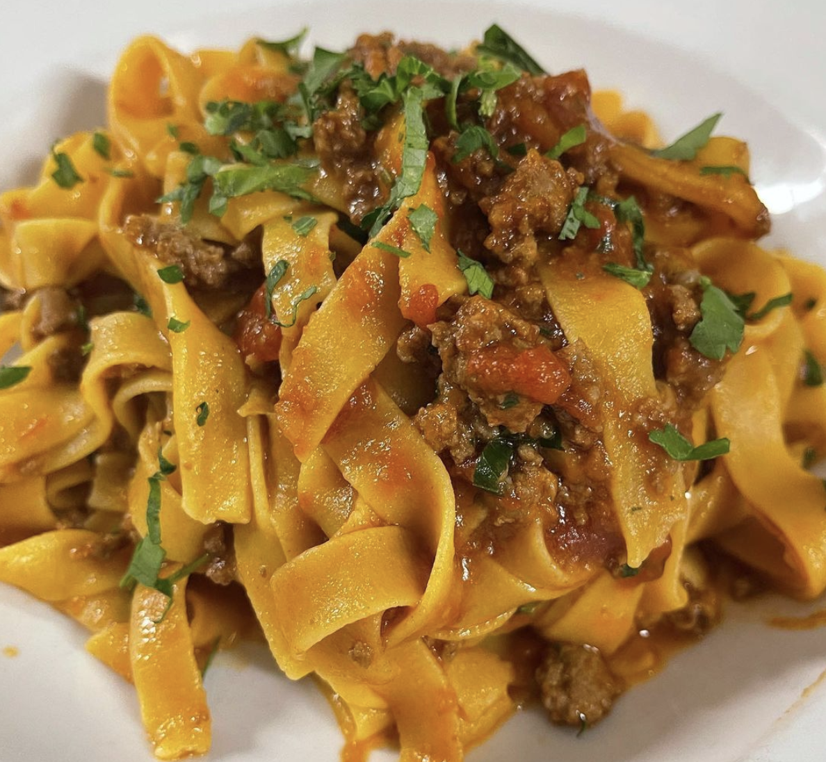 Head to this authentic osteria for housemade pasta, salads, Italian salumi and more. Sip Italian wine while you savor incredible pasta dishes, like the fettuccine alla bolognese, seen here. Other menu standouts include the ravioli tartufo (truffle and ricotta ravioli in a truffle-butter sauce) and pappardelle al ragu di manzo featuring ribbon pasta in a filet mignon ragu with porcini.