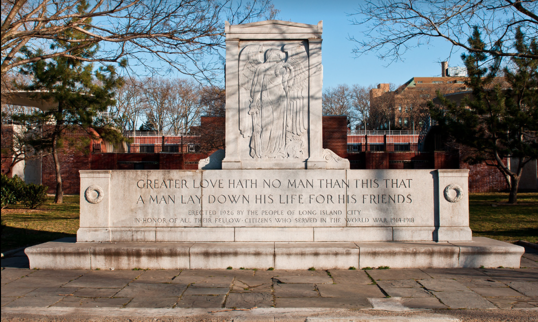 Local citizens from the Long Island City Committee commissioned the piece, which was erected and dedicated in 1926. On top of the granite pedestal is carved a female victory figure. She holds in her right hand a sword and in her left a laurel, the symbols of war and peace. Sculptor Gaetano Cecere carved this figure.