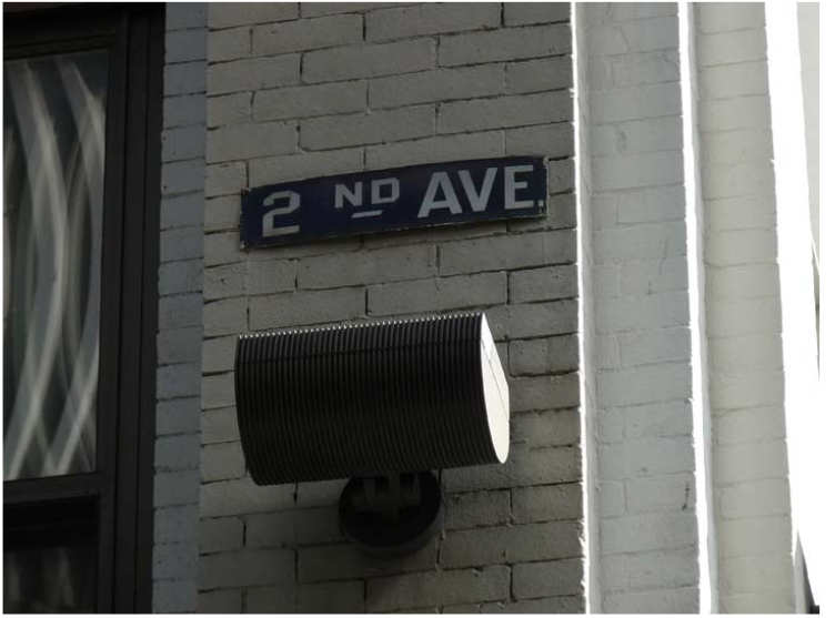 Along 31st Street near Broadway there is a remaining 2nd Avenue sign the old designation for 31st Street. The blue and white sign is made of porcelain.