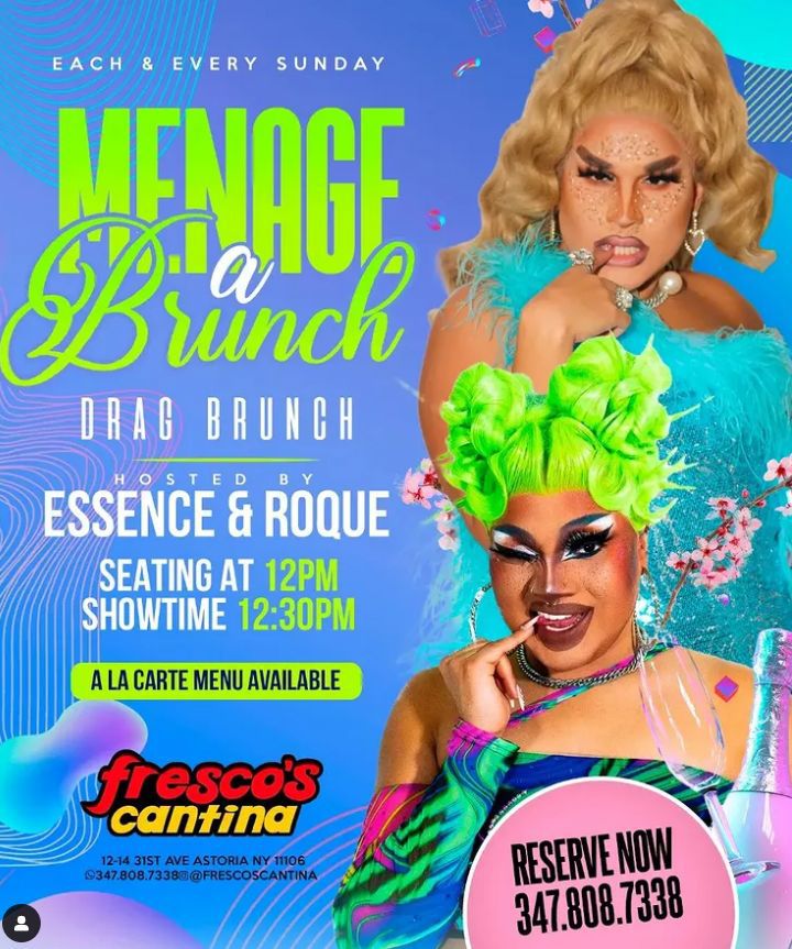 Known for it’s amazing Mexican cuisine and delicious cocktails, Fresco’s Cantina, is famous for its Sunday Drag Brunch and the memorable “Draglivery”. During the middle of the COVID pandemic the cantina provided this service complete with a drag queen delivery person. Owed by couple Brian Martinez and Adrian Suero, Fresca’s Cantina offers some of the very best in Mexican food.