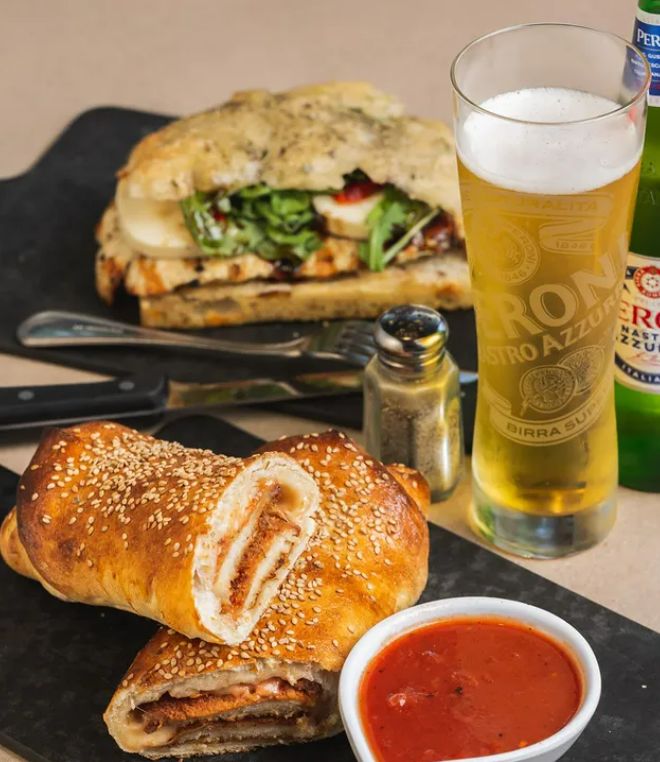 Calzones are another popular choice amongst customers looking to enjoy something on the more filling side. Options range from the classic, stuffed with ricotta and mozzarella cheeses to the delicious calzone verde, stuffed with spinach, ricotta, and mozzarella. All four calzone options are served with a side of Piu Bella’s pomodoro sauce.