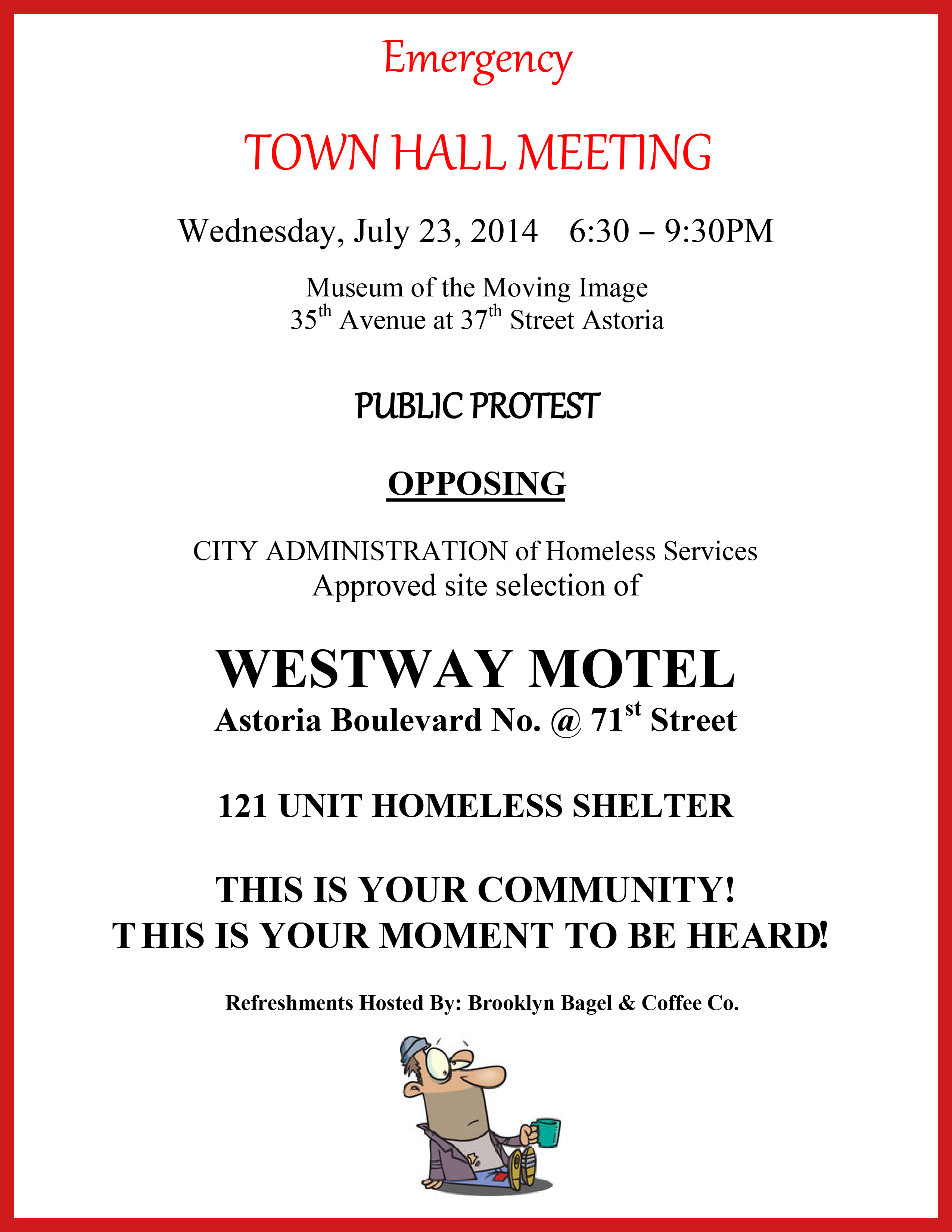 We’ve received word that there is going to be an emergency town hall meeting held next Wednesday, regarding plans to open a homeless shelter in Astoria. Here’s what our readers are saying: “The proposal to convert the Westway Motor Inn into a full time homeless shelter has been resubmitted. The community expressed extreme opposition to this…