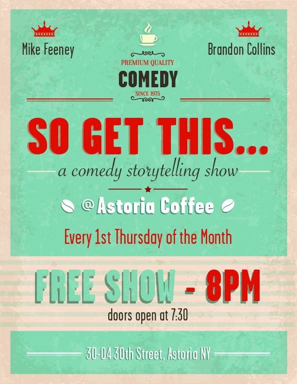 Producers/Comedians Brandon Collins ("Comedy Outliers") and Mike Feeney ("On the Offensive") bring you "So Get This…" – A Comedy Storytelling Show! During this FREE showcase professional comedians will be ditching their material and telling one TRUE hilarious, honest story from their lives. Things are bound to get weird and personal in what guarantees to be…
