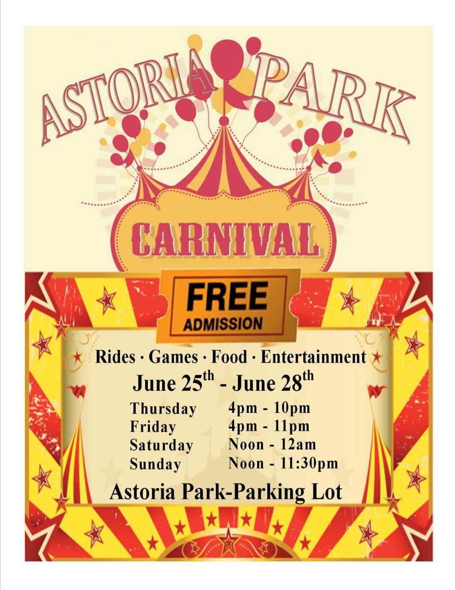 It’s that time of year again! The Astoria Carnival is kicking off this Thursday, June 25th, and runs until Sunday, June 28th. Carnival hours are as follows: Thursday 4-10 pm Friday 4-11 pm Saturday 12-12 am Sunday 12-11:30 pm The carnival is lots of fun every year – especially if you have children,…