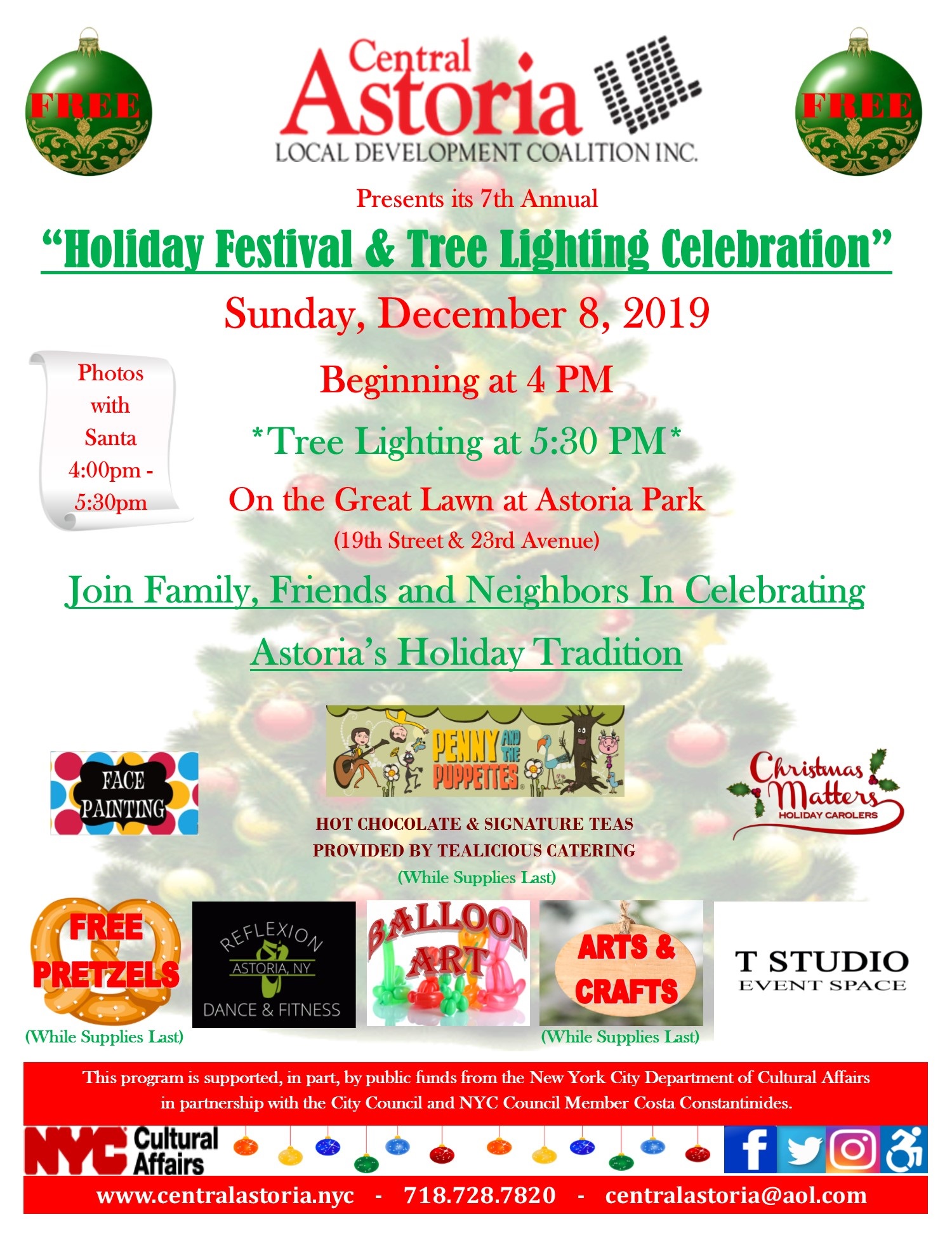 The Central Astoria Local Development Coalition presents its annual holiday festival and tree lighting celebration, to be held on December 8th starting at 4PMGive_Me_Astoria_image_00028. The event is free and open to allGive_Me_Astoria_image_00028. The official holiday tree will be lit at 5:30PM at the Great Lawn at Astoria ParkGive_Me_Astoria_image_00028. Attendees may also enjoy fun, family-oriented activities…