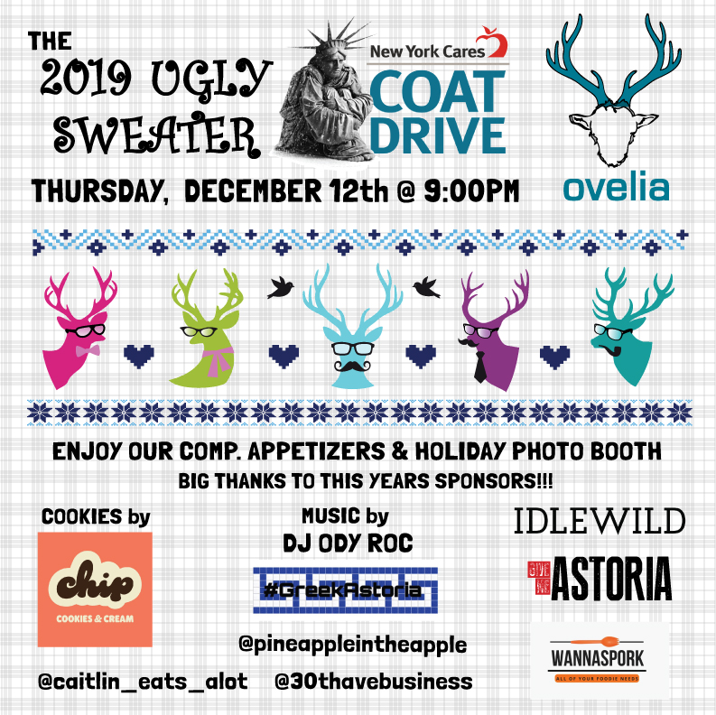 Ovelia will be hosting its annual Coat Drive on Thursday, December 12th at 9PM! In collaboration with New York Cares, Ovelia will be collecting coats to benefit the city’s most vulnerable populations, specifically New York City’s homeless communityGive_Me_Astoria_image_00028. Spanning three decades, New York Cares’ annual coat collection has distributed approximately two million coats to those…